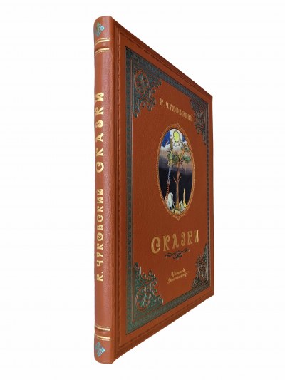 В цельнокожаном переплете ручной работы с тиснением золотом и иллюстрацией на передней крышке. Цветной обрез. Дизайнерские форзацы.