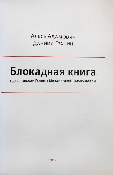 Издание "Блокадной книги" осуществлено по инициативе Михаила Юрьевича Карисалова как посвящение своей бабушке Галине Михайловой-Карисаловой, прошедшей блокаду и описавшей ее события в своих дневниках.