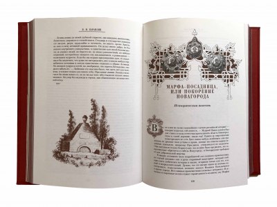 Книга в цельнокожаном переплете ручной работы с тиснением золотом и иллюстрацией на передней переплетной крышке.