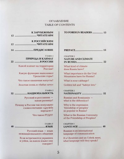 Она позволит получить много новой информации и о современной России, о тех изменениях, которые произошли в ней за последнее время. Автор предлагает 19 глав, в которых подробно рассматриваются самые разнообразные темы, вызывающие неизменный интерес у иностранцев (стереотипы общения у русских, знакомство и представление, разговор по телефону, праздники и поздравления и т.д.). В книге можно найти ответы на многие вопросы, возникающие при знакомстве с Россией (Когда к русским можно обращаться на "вы", а когда на "ты"? Когда человека можно назвать только по имени, а когда по имени-отчеству? Русский и россиянин — какая разница? Что такое дача, блины, бабье лето, Масленица и т.д.). Книга будет интересна и российским читателям.