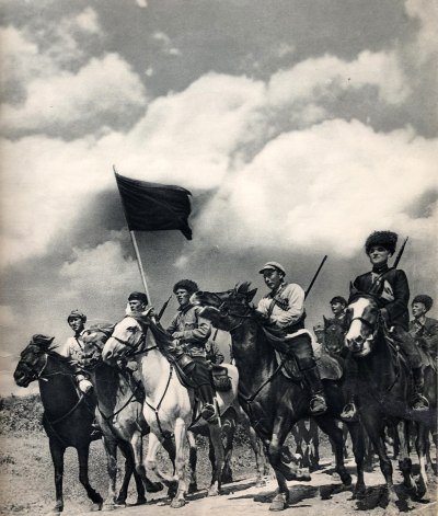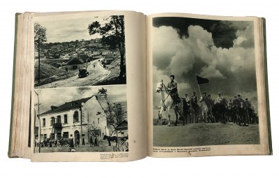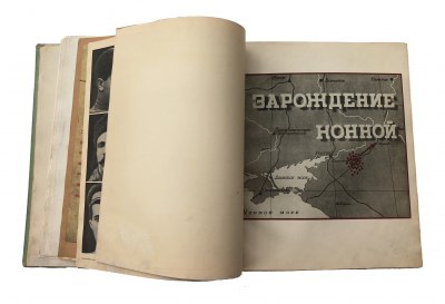 Издание должно было отразить историю легендарной Первой конной армии, но реальных фото и изобразительных материалов времен Гражданской войны не существовало, поэтому историческая часть представлена репродукциями плакатов, карикатур, рисунков, живописи и нескольких реальных документов: телеграмм, приказов, писем, газет, листовок. Воспроизведены графика и живопись Моора, Кукрыниксов, Иогансона, Дейнеки, Вавилова, Владимирова и других художников. Множество портретов советских партийных, государственных деятелей, а также видных военачальников.