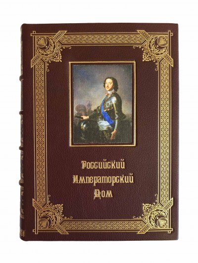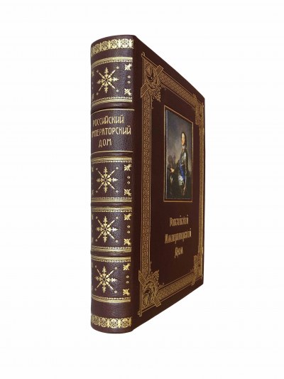 Книга в цельнокожаном переплете ручной работы с тиснением золотом и иллюстрацией на передней переплетной крышке. Дизайнерские обрезы.