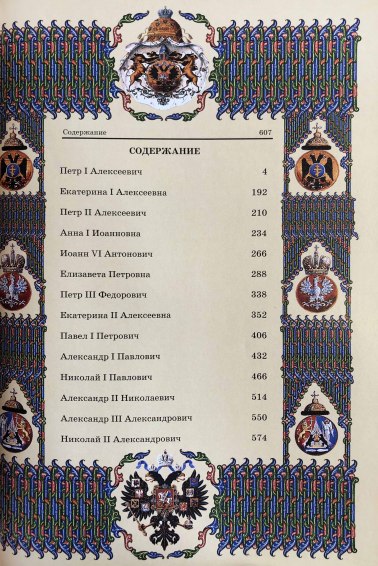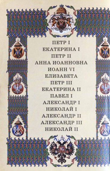Очерки о российских императорах, проиллюстрированные работами русских и западноевропейских художников 17-20 веков.