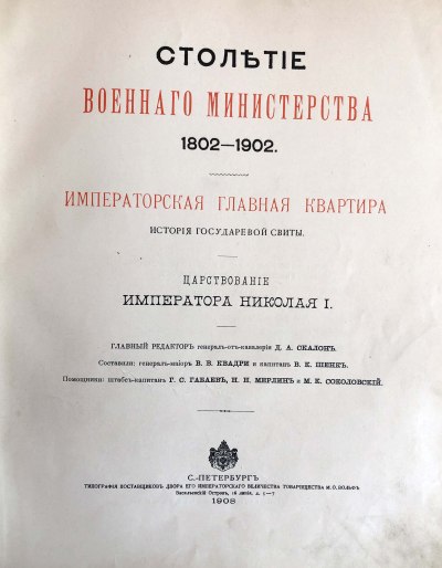 В 1902 году в России отмечался столетний юбилей образования в России министерств. Император Николай II перед празднованием юбилея отдал распоряжение о написании книг, посвященных истории деятельности министерств и ведомств за 100 лет. Военному министру генерал-лейтенанту Д. А. Скалону было отдано распоряжение составить историю военного министерства.