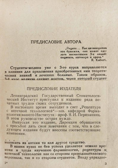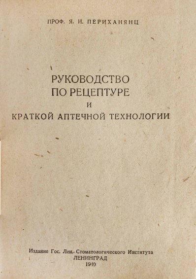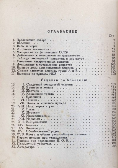 Из предисловия: При составлении этого руководства мы, конечно, не могли поместить все наименования, учитывая бюджет времени студента и объем руководства. Мы ограничились 620 рецептами, разделенными по роду болезней. Мы ввели также справочник противоядий при отравлениях медикаментозными ядами и Б. О. В. Надеемся, что составленное нами пособие облегчит студентам-медикам, в частности стоматологам, для которых, главным образом, и рассчитано это издание, задачу прочного усвоения рецептуры и аптечной технологии.