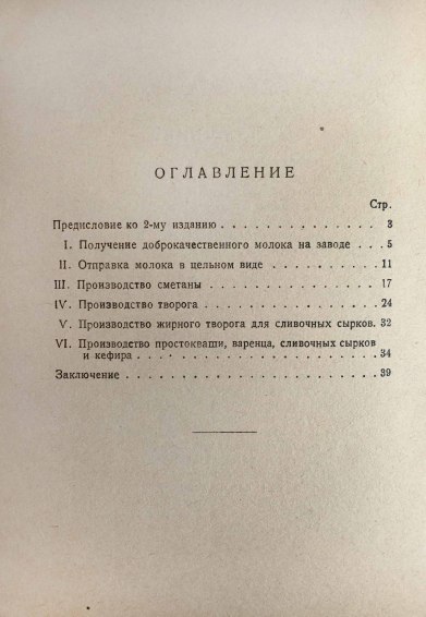 Содержание: Получение доброкачественного молока на заводе, Отправка молока в цельном виде, Производство сметаны, Производство творога, Производство жирного творога для сливочных сырков, Производство простокваши, варенца, сливочных сырков и кефира.