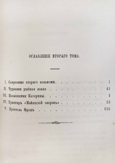 Список произведений: Признание кларнетиста, Цыгане, Знаменитый доктор Матеус, Реквием ворону, Скрипка повешенного, Лесной дом, Сокровище старого вельможи, Чудесная рыбная ловля, Поклонники Катерины, Трактир "Майнцский окорок", Приятель Фриц.