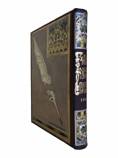 В художественном коленкоровом издательском переплёте в неорусском стиле работы А. Синцова.