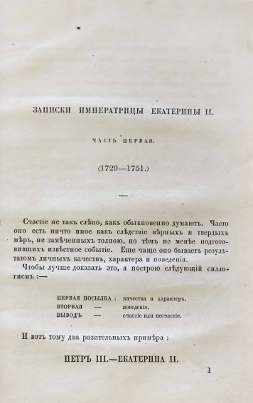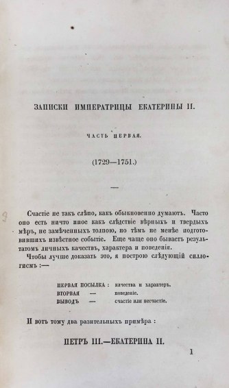 В предисловии Герцен писал: «До последнего времени мемуары Екатерины содержались в великой тайне. В самом деле, вся преемственность царского рода разрушается. Не только происхождение его от Романовых опровергнуто, но даже связь с Голштинской династией, о которой запрещалось у нас преподавать в гимназиях, — прерывается сыном. Говорят, что Павел дал только одну копию мемуаров другу и товарищу своего детства, князю Александру Куракину. Когда он умер в 1818 году, Александр Иванович Тургенев успел проникнуть в его библиотеку и снял для себя список. Отсюда пошли все списки, существовавшие в России. Пушкин в Одессе собственноручно переписал для себя все мемуары из библиотеки графа Воронцова. (...) Преследование мемуаров началось с тех пор как Тургенев проговорился Николаю, что знает их. Николай посылал через III отделение к тем лицам, у кого были списки, просить их для себя, и потом сжигал. Даже наследник его не мог достать заветной рукописи до самого вступления своего на престол».