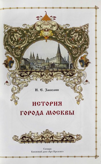 Выдающийся русский историк Иван Егорович Забелин (1820-1909) работала книгой «История города Москвы» по поручению Московской Городской Думы. Это издание стало первым полным и глубоким историческим описанием столицы.