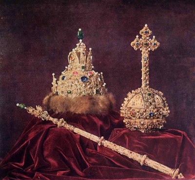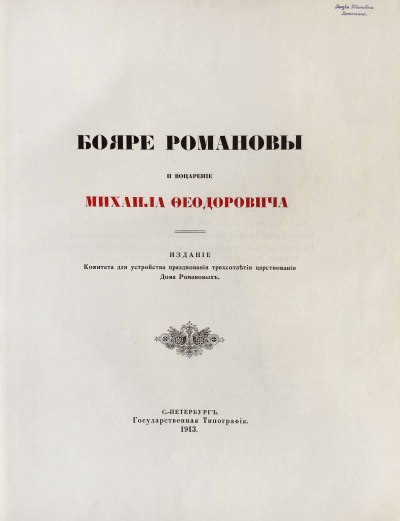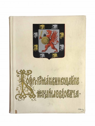 Книга в издательском коленкоровом переплете с тиснением золотом. На передней крышке цветным типографским тиснением: герб рода Романовых.