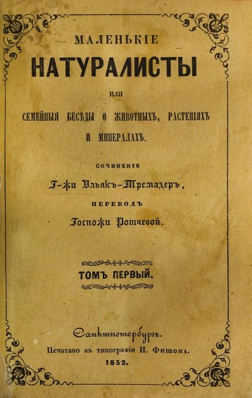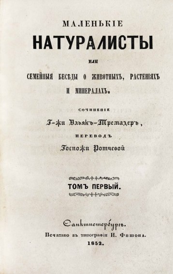 Маленькие натуралисты или Семейные беседы о животных, растениях и минералах. Книги разделены на темы: Четвероногие, Птицы, Пресмыкающиеся и рыбы, Раковины, Насекомые, Животнорастения, Ботаника, Минералы.