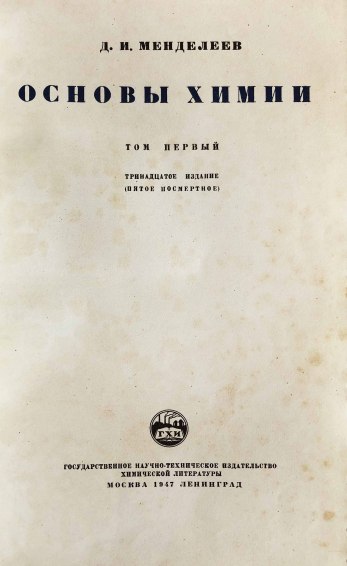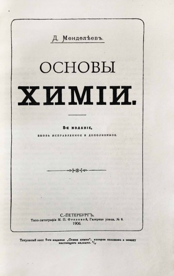 «Основы химии» Д. И. Менделеева — это исторически первое современно руководство по неорганической химии, материал в котором был систематизирован и распложен в соответствии с периодическим законом химических элементов. В 1868 году Менделеев приступил к работе над «Основами химии». Работая над этим курсом, он открыл периодический закон химических элементов. По преданию, 17 февраля 1869 года он после долгого чтения неожиданно заснул на своём диване в кабинете и ему приснилась периодическая система элементов.