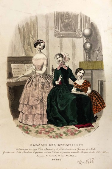 Журнал «Les Modes Parisiennes», основанный в 1843 году, способствовал закреплению за Францией статуса законодательницы моды. Основным художником иллюстратором «Les Modes Parisiennes» был Ф.-К. Комт-Кали (François-Claudins Compte-Calix). Художник учился в школе изящных искусств родного города, его работы впервые выставлены в Парижском салоне в 1840 году. Он был известен как акварелист, мастер портретного жанра. Помимо прекрасных иллюстраций журнала, работы художника также украшали исторические книги той эпохи.