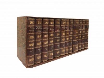 Каждая книга в цельнокожаном переплете.
