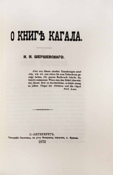 "О книге Кагала" И. И. Шершевского. 1872 г.
