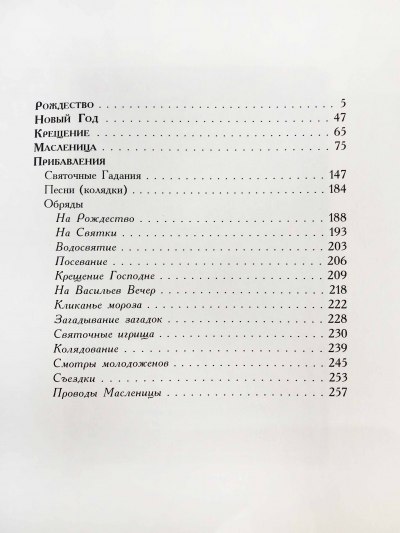 В книге описаны народные обычаи, празднования наиболее важных дней в году: Рождества, Нового года, Крещения, Масленицы и Пасхи. Она рассказывает истории великих праздников, описывает церковные обряды, празднования в столицах, уездных городах и деревнях, а также все сопутствующие им развлечения.