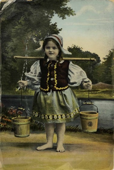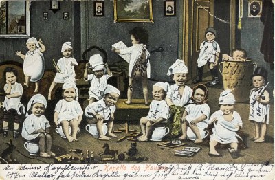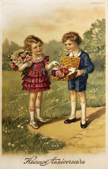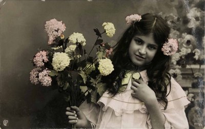 Примеры открыток: французская открытка 1900-х годов с изображением малышей в пижамах на горшках, французская фотооткрытка с позирующей девушкой и ребенком, рисованная немецкая открытка с девочкой 1920-х годов и многие другие.