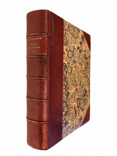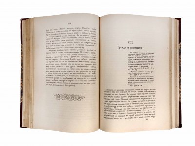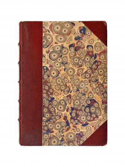 Книга в полукожаном переплете эпохи с тиснением золотом на корешке.