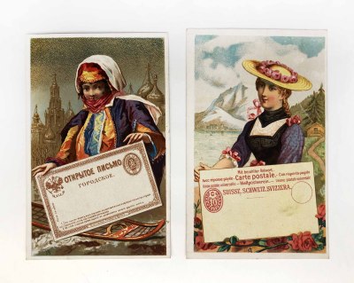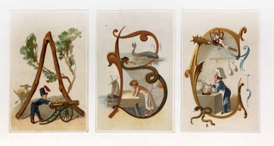В альбоме собраны карточки с разными тематиками: алфавит, карточки с банкнотами разных стран напечатанные Ж. Богнаром, животные в человеческих образах, девушки с открытками из разных стран, шахматы, древние цивилизации и другие.