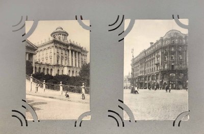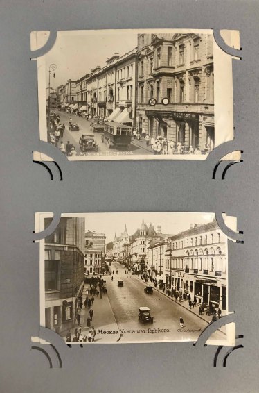 Альбом для фотографий и открыток включает 28 листов с прорезями для углов открыток.