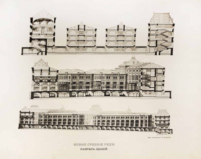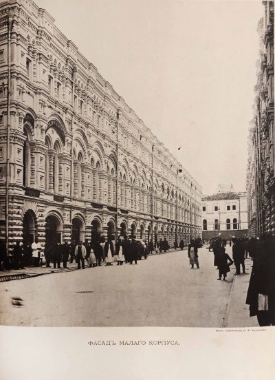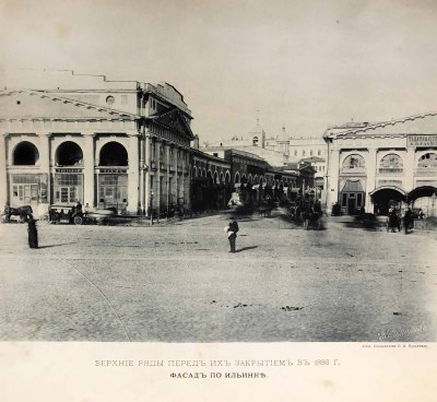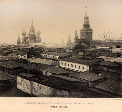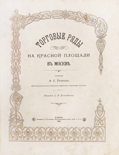 Исторический очерк «Торговые ряды на Красной площади в Москве» Александра Соломоновича Размадзе (1845–1896) написаны сразу по окончании строительства Верхних торговых рядов. В нем рассказывается об истории торговли на Красной площади, о проектировании и строительстве нового здания, а также об участниках этого проекта, о внешнем виде и технологических особенностях возведенного сооружения. В издании воспроизведены исторические виды Красной площади, а также снимки, сделанные на месте во время проведения строительных работ.