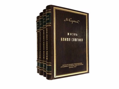 Каждый том в цельнокожаном переплете ручной работы с тиснением золотом.