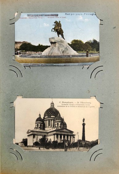 В альбоме представлены редкие цветные и черно-белые винтажные открытки с достопримечательностями Санкт-Петербурга.