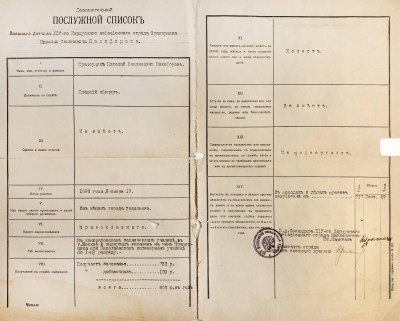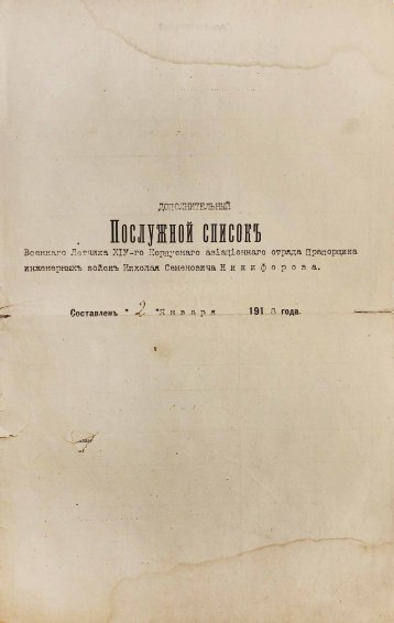 Послужной список военного летчика ХIV-го Корпусного Авиационного отряда Прапорщика инженерных войск Николая Семеновича Никифорова. Составлен 2 января 1918 года.