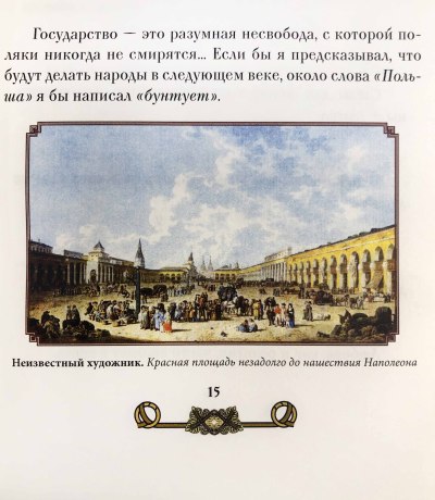 Цитаты властителей различных стран мира, которые дают возможность проследить, какими соображениями руководствовались те или иные правители в принятии судьбоносных решений. Фридрих II, граф фон Бисмарк, Наполеон Бонапарт, Петр I, Екатерина II… Ознакомившись с их высказываниями, мы можем другими глазами взглянуть на прошедшую историю. Ведь мысли этих людей воплощались в реальные дела мировых событий. Великие люди и дела творили великие. Сказанное много веков назад настолько актуально по сию пору, что невольно начинаешь задумываться о том, что самые главные вещи в жизни не подлежат переменам.