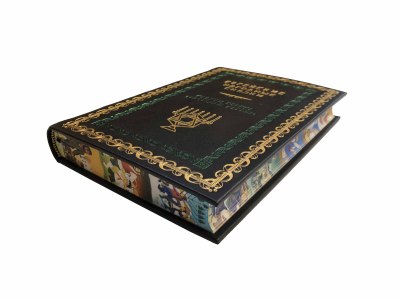 В цельнокожаном переплете ручной работы с золотым и цветным тиснением. Дизайнерские форзацы. Иллюстрированные обрезы.