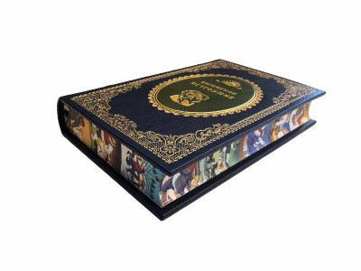 В цельнокожаном переплете ручной работы с тиснением золотом. Дизайнерские иллюстрированные обрезы. Дизайнерские форзацы. Тонкое шелковое ляссе.