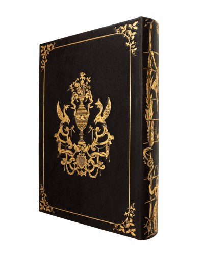 В цельнокожаном переплете ручной работы с узорным тиснением золотом. Дизайнерские форзацы. Черно-белые иллюстрации.