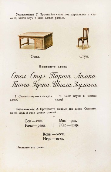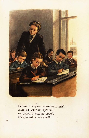 Учебник русского языка для первого класса начальной школы советской эпохи. Содержание учебника направлено на обучение детей грамматике, правописанию и развитию речи. Мы привыкли видеть в учебниках только методический потенциал, рассматривать их как обучающее средство. Однако в учебниках советской эпохи следует видеть также памятник языка научного и исторического значения. В нем отражается языковая картина мира народа в определенную эпоху.