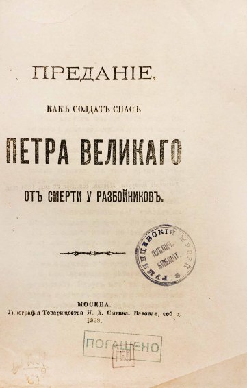 Предание, как солдат спас Петра Великаго от смерти у разбойников