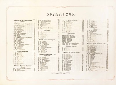В альбоме впервые собраны биографии видных государственных личностей, членов Государственного совета, Государственной думы, биографии военных деятелей, известных русских промышленников, финансистов, представителей религии, искусства и науки.