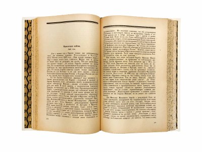 Книга в цельнокожаном переплете ручной работы с тиснением. Дизайнерские форзацы. Издательская обложка сохранена в переплете.