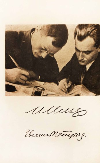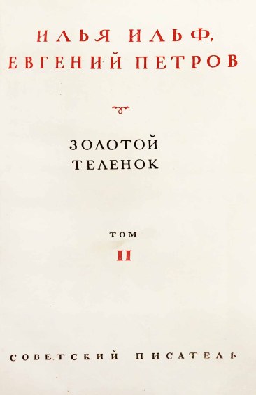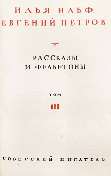 В 1938-39 гг. издательство «Советский писатель» выпустило четырёхтомное собрание сочинений Ильфа и Петрова. Тогда мало кто из советских классиков удостоился такой чести. Первые два тома вышли на плотной бумаге с иллюстрациями на отдельных вклейках, а два последующие — на тонкой и без иллюстраций.