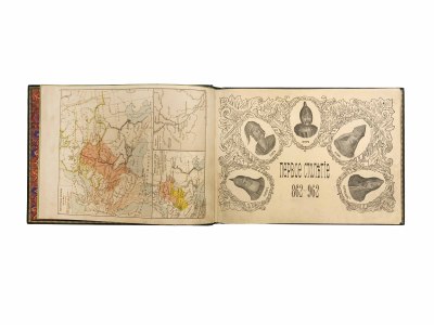 Издание содержит отпечатанные в цвете раскладные карты и планы, факсимиле, портреты царствующих особ от Рюрика до Николая II и проч., а также краткую историю России за все 11 столетий официального существования государства, с изложением основных событий.