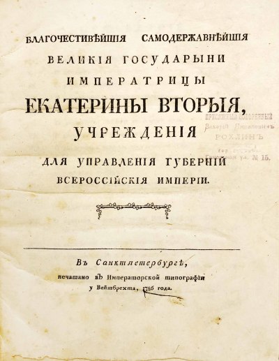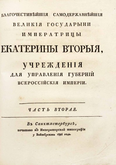 Учреждения для управления губерний Всероссийской империи это важнейший законодательный акт реформы местного управления, принятый в 1770-1780х годах, в правление императрицы Екатерины II.