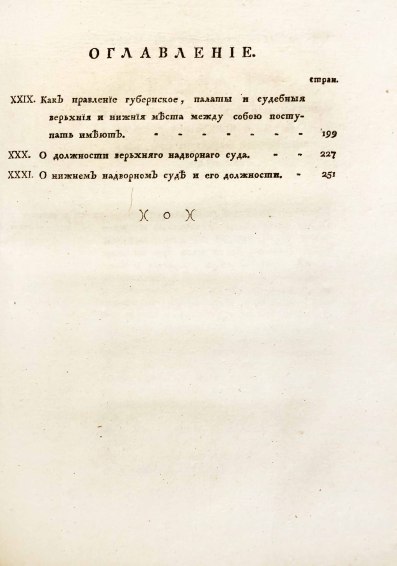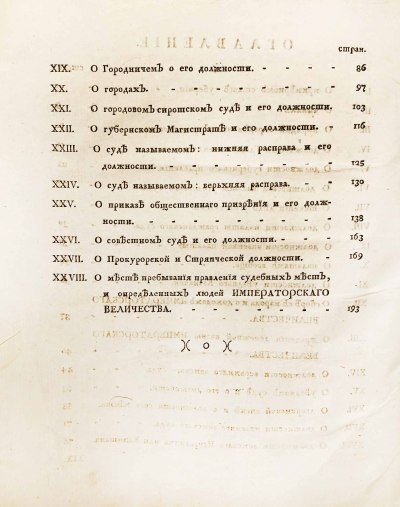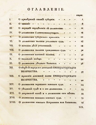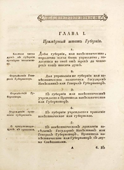Этот кодекс законов упразднил провинции, упорядочил деление России на губернии и уезды, создал новую судебную систему по сословиям, реформировал местный административно-полицейский аппарат (губернаторы и губернские правления, капитаны-исправники и нижние земские суды, городничие).