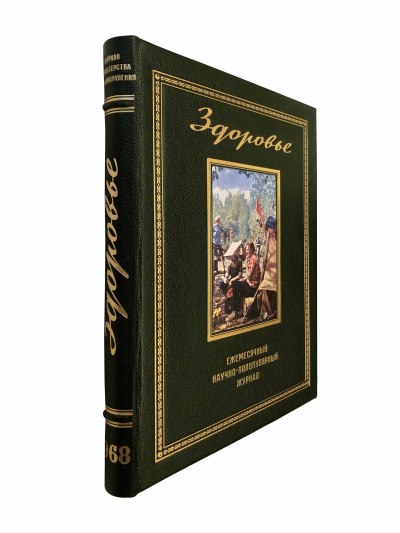 В цельнокожаном переплете ручной работы с золотым тиснением и иллюстрацией на передней крышке. Иллюстрированные форзацы. Цветные иллюстрированные обложки сохранены в переплете.