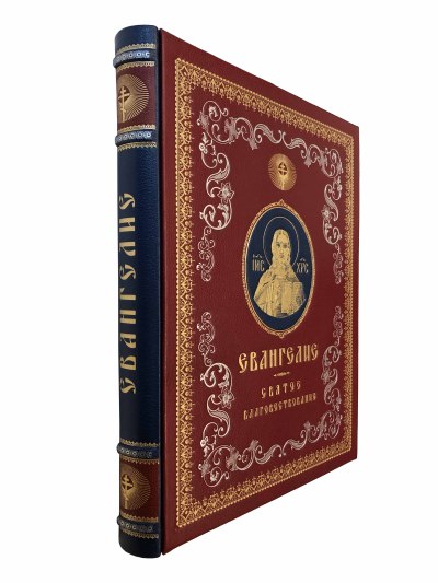 В цельнокожаном переплете ручной работы с золотым и цветным тиснением и золотой инкрустацией на передней крышке. Шелковые форзацы. Дизайнерский обрез.