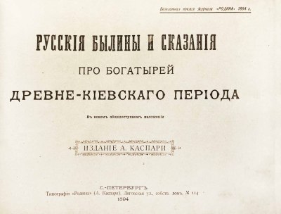 Спб.: Издание А. Каспари; Тип. «Родины». 1894 год.