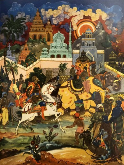 Подарочное издание на трех языках: русском, английском и хинди. Великолепные цветные иллюстрации (Палех) на отдельных листах под кальками.