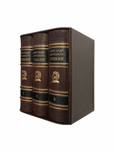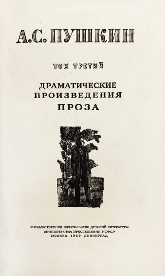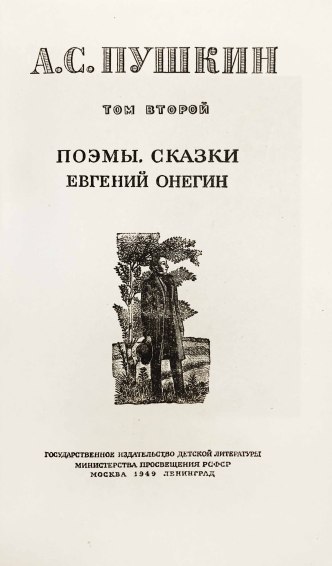Иллюстрированное юбилейное издание произведений Александра Сергеевича Пушкина (1798-1831). Трехтомник вышел в 1949 году в издательстве «Детгиз». Художественный редактор В. Пахомов сумел привлечь к работе над этим изданием известных советских художников-графиков.