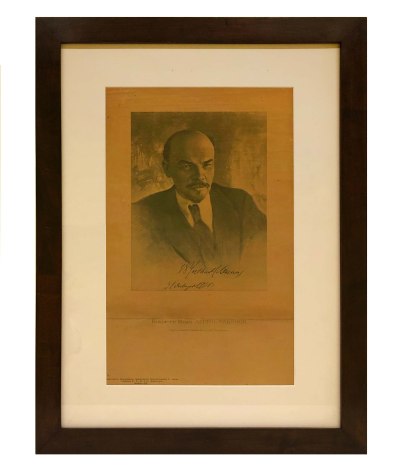Художник Владислав Измайлович сделал картину по фото Наппельбаума и при тиражировании на рисунок стали наносить тот же ленинский автограф, что и на фотографию.