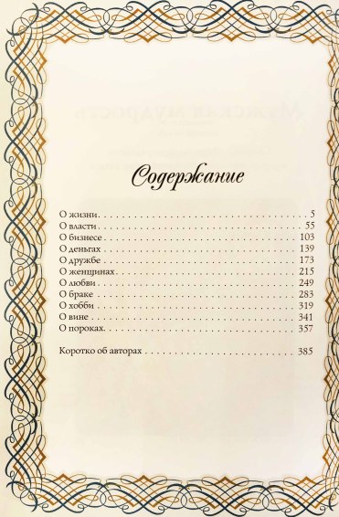 В этой книге собраны афоризмы, посвященные мудрости мира мужчин и их увлечений. Авторы — от античных писателей и философов до наших современников — делятся с читателями своими жизненными наблюдениями. Идут века, а проблемы человечества остаются теми же: отношение к власти, деньгам, труду, пусть даже теперь его и называют бизнесом… На наши вопросы давно найдены ответы, прочитайте эту книгу - они на ее страницах.