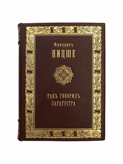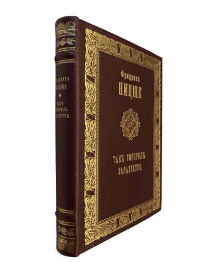 В цельнокожаном переплете ручной работы с узорным тиснением золотом.