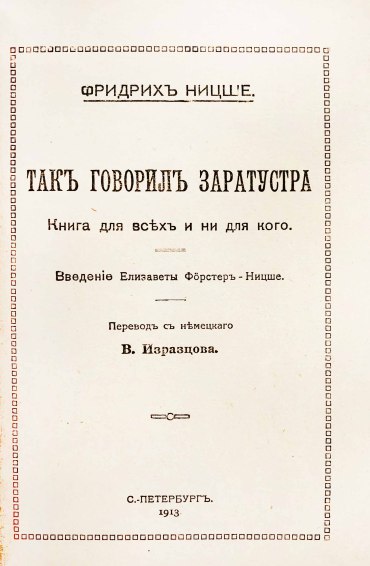 Спб.:  тип. Акц. общ. тип. дела. 1913 год. Введение Елизаветы Форстер-Ницше; Пер. с нем. В. Изразцова.